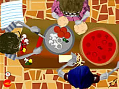 Create the various pizzas with their chosen toppings. Watch out for the rats and spiders!