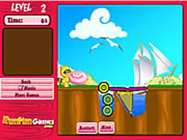 Little Racoon is stuck in some trouble on his way home. Please build up a bridge with the available blocks so that he can cross the river and go home. Drag the blocks to any position that you think will eventually form a bridge.