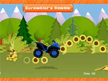 Scrambler ist mit Scruffty im Wald Offroad unterwegs. Hilf ihm, in einer Minute so viele Sonnenblumen wie möglich zu sammeln. Drücke die linke Pfeiltaste, damit er nach links fährt, und die rechte Pfeiltaste, damit er nach rechts fährt. Die Pfeiltaste nach oben lässt ihn springen. Wenn Scrambler schnell genug fährt, springt er über die Rampen. Aber pass auf den Schlamm auf, denn dieser bremst Scrambler ab.