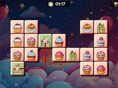Cake Link Master ist ein lustiges Puzzlespiel, bei dem Sie zwei übereinstimmende Kuchen antippen, um sie mit einer Linie zu verbinden. Die Linie kann sich bis zu zweimal drehen, darf aber nicht über andere Kacheln gehen. Das Spiel hat 120 herausfordernde Levels, und die Schwierigkeit nimmt mit der Spielzeit zu. Räumen Sie die Kuchen ab, lösen Sie die Rätsel und genießen Sie stundenlangen süßen, entspannenden Spaß! Viel Spaß beim Spielen dieses Kuchenverbindungs-Puzzlespiels hier auf Y8.com!
