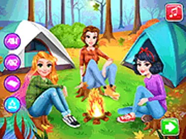Begleite deine Lieblingsprinzessinnen auf einen Camping-Schulausflug. Du musst ihnen helfen, ein Zelt auszuwählen, ein Lagerfeuer zu machen oder ein Brettspiel zu spielen. Danach spiel Verkleiden mit den Mädchen.