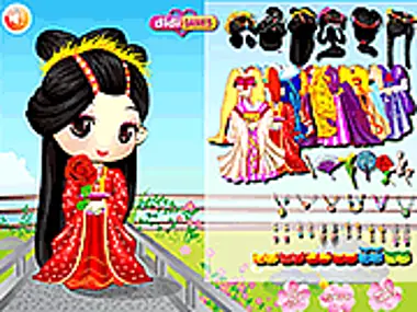 Prinzessin Maiko bereitet sich auf die Hochzeitszeremonie ihrer Schwester vor. Schauen wir uns ihre königliche Garderobe an und wählen das schönste Kimono und die passenden Accessoires aus! Eine traditionelle Frisur wird ihrem Look eine besondere Note verleihen!