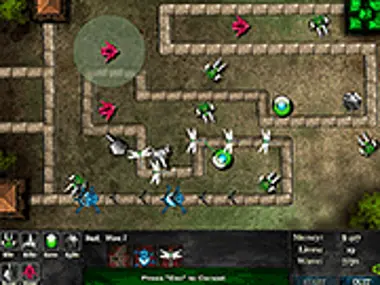 There are hords of bugs you have to stop in the turret defense game 'D-Bug Tower Defense'. Drag various devices into the screen to exterminate them!