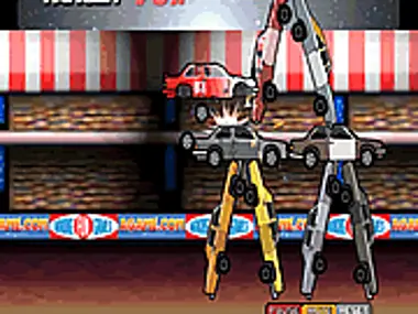 Adjust your car ramp and slam into the car stacks to perform enough damage to progress.