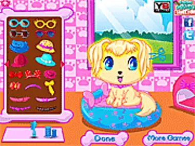 Dieses süße Hündchen braucht ein komplettes Umstyling. Könntest du ihr helfen? Zuerst sollten wir ihr Fell und ihre Haare trimmen, dann könnten wir diese niedlichen Accessoires benutzen, um sie anzuziehen! Viel Spaß!