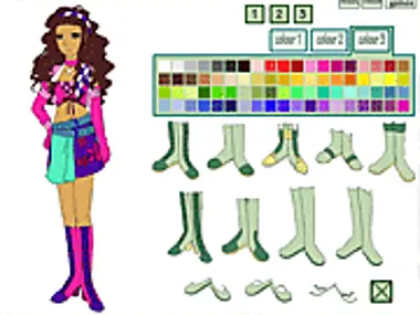 Wähle die schönsten Kleidungsstücke aus, die dir zur Verfügung stehen. Verpasse ihnen dann durch Färben einen fantastischen Look und wähle schließlich Accessoires und Schuhe, um das Outfit dieses Mädchens zu vervollständigen.