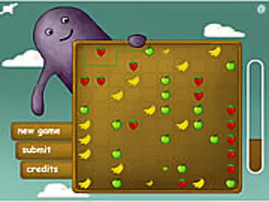 Klicke auf die Frucht, dann klicke auf die leere Stelle, um sie zu bewegen. Bilde ein 2x2-Quadrat derselben Fruchtart. Mache Kombos, um mehr Punkte und Power-Ups zu erhalten. Kombiniere Eiscreme mit einer beliebigen Frucht. Der Löffel räumt alles drumherum ab. Benutze die Gabel, um eine Spalte und eine Reihe abzuräumen.