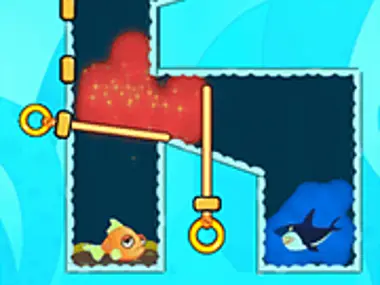 Fish! Rescue – Ein interessantes Spiel im Unpin-to-Win-Stil. Du musst die Fische retten, indem du Stifte ziehst und den gefährlichen Hai tötest, nutze die Physik, um das Wasser an die richtige Stelle zu bewegen und die Lava zu meiden. Nutze die Maus oder tippe, um mit dem Spiel zu interagieren und den Stift zu ziehen.