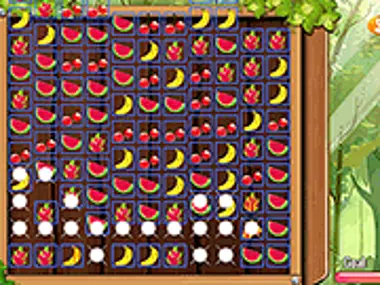 Collapse type of Match 3 game. Click on a group of 3 or more of the same items to remove it. Collect as many fruit as indicated.