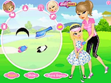 Olivia und ihre Tochter Ariana gehen heute Golf spielen! Sie lieben es, Zeit miteinander zu verbringen und körperlich aktiv zu sein! Bist du bereit, sie anzuziehen? Wähle Kleidung und Golf-Accessoires für beide aus, mache ihre Haare und schicke sie auf den Golfplatz und sieh ihnen beim Spielen zu!