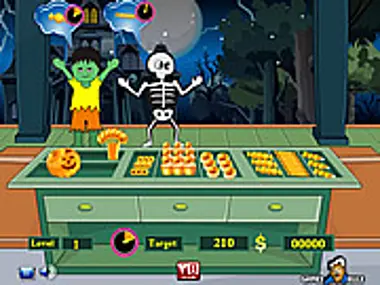 Es ist Halloween-Festsaison! Du hast den Süßigkeitenladen renoviert, um Halloween-verkleidete Kinder mit saisonalen Süßigkeiten anzulocken. Verdiene Geld, indem du die Süßigkeiten nach dem Wunsch der Kinder servierst.