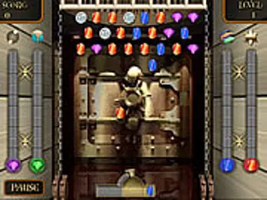 Shoot the jewels at the others getting them all to disappear before they drop low enough to hit you.