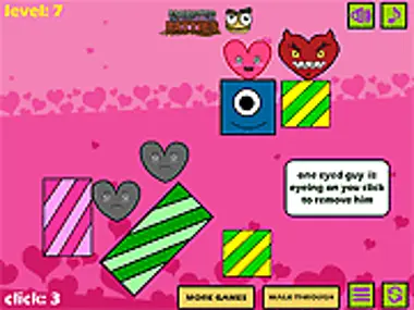 Remove grey & devil hearts while keeping the pink ones on the screen, all while using limited clicks