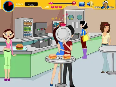 Du und deine Freundin habt euch nach langer Zeit bei einem Date getroffen, aber deine Freundin hat die schlimmsten Freunde der Welt, die keine Jungsfreundschaften mögen. Sie wollen euch beide nicht allein lassen. Also haben sie angefangen, euch überallhin zu folgen. Verstecke den Kuss, ohne von den Mädchen bemerkt zu werden, denn sonst verlierst du ein Leben. Und fülle den Ladebalken innerhalb der vorgegebenen Zeit.