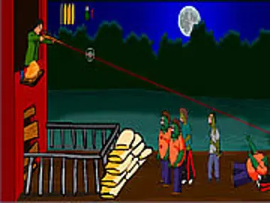 Shoot the incoming zombies. Careful to reload quick and to upgrade through weapons shop.