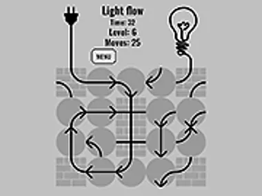 Ein einfaches Puzzlespiel, bei dem Sie die Glühbirne zum Leuchten bringen müssen. Drehen Sie Blöcke von der Quelle aus, bis diese mit der Glühbirne verbunden ist. 12 herausfordernde Levels zum Spielen.