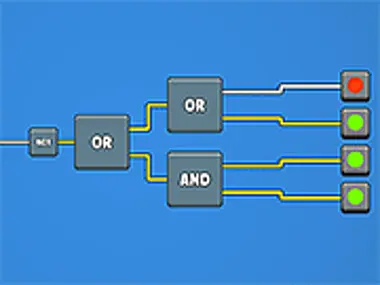 Logic Gates ist ein cooles Logik-Signalfluss-Spiel, das dich herausfordert, Signale zu leiten, um das grüne Licht einzuschalten. Die Dynamik ist einfacher, als sie scheint. Du sendest entweder ein Signal oder nicht. Die Herausforderung besteht darin, herauszufinden, welche Lichter eingeschaltet und welche ausgeschaltet werden müssen, damit die Signale die richtigen Tore passieren. Die „Und“-Gatter benötigen zwei grüne Lichter, um ein neues Signal zu senden. Die „Oder“-Gatter benötigen ein eingeschaltetes und ein ausgeschaltetes Licht, um ein neues Signal zu senden. Schließlich dürfen die „Nor“-Gatter kein grünes Licht empfangen, um ein Signal zu senden. Die wahre Herausforderung beginnt, sobald sich die Gatter kreuzen. Beginne, diese grünen und roten Knöpfe zu schalten, um es herauszufinden. Es warten viele Level darauf, von dir gelöst zu werden. Viel Spaß beim Spielen dieses Puzzlespiels hier auf Y8.com!