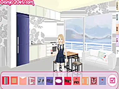 Our friend has moved to a new apartment to live on her own. Help her decorate the house so it looks cool; you can also make her up and do her hair in the bathoroom and put on her outfits in the closet.