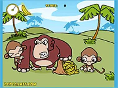 Steal the banana's from the big gorilla's pile while he's distracted by the other monkeys! Dont let him catch you , that will hurt..