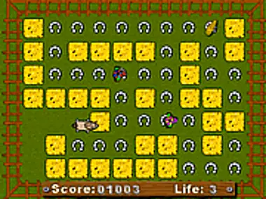 Help Peter Pony gather all the horseshoes scattered around the farm, without being discovered by his jockey. From time to time this nice little pony will find some treats, like corn and apples. Each treat is worth points.
