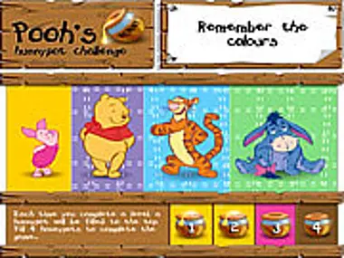Remember the color sequence and then copy it. Each time you complete a level, a hunnypot will be filled to the top. Fill 4 honeypots to complete the game.