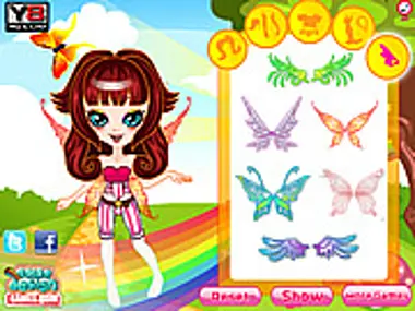 This cute rainbow fairy lives in a world of colors. She wants to look as beautiful and colorful as a rainbow does. So let's help dress her up!