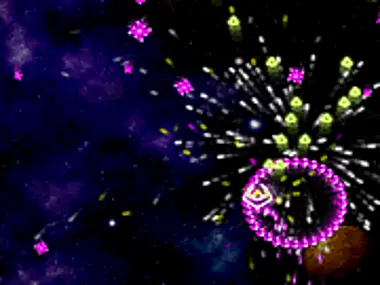 A neon spaceship shooter with plenty of powerups to grab. Levels begin to rotate and get harder.