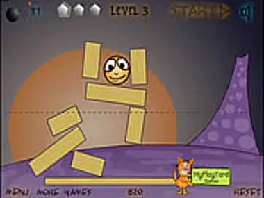 Drag and drop bombs to cause explosions & get Round Man below the dashed line.