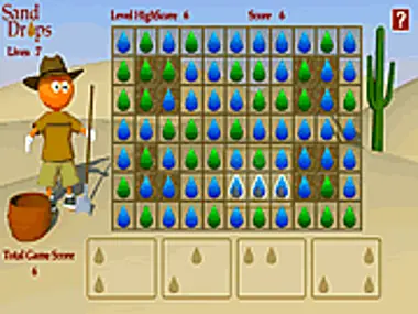 Platziere die Sandtropfen-Teile auf Tropfen derselben Farbe. Kannst du alle Wände in den 60 Levels verschwinden lassen? Wenn dein Sandtropfen-Teil nicht passt, kannst du es in den Sternentopf werfen. Aber Vorsicht! Das kostet dich ein Leben.