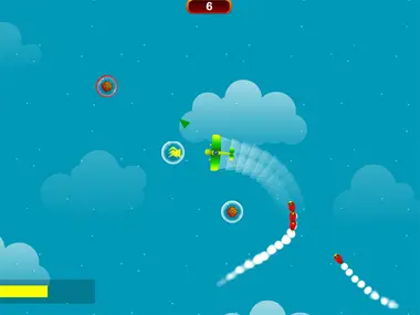 Fly the airplane and collecting all the floating bubble power ups as you evade rockets chasing you. Don't crash on floating bomb obstacles.