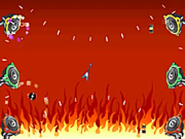 Asteroids remake where you're a guitar shooting records. Nice powerups and better than original.