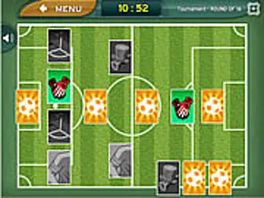 Ein komplett fußballthematisches Memory-Spiel, bei dem du ein „Turnier“ mit 5 verschiedenen Levels bestreiten musst. In jedem Level wird zufällig eine fußballthematische Anordnung für die 20 Karten gewählt. Du musst alle Paare finden, bevor der Timer 90:00 erreicht (Spielende!).