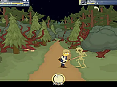 Talk to people in your village & start your adventure as you fight baddies in turn-based battles.