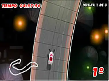 Complete all the turns to the track in the less possible time without falling into the emptiness. Use the arrow keys to drive. Press Shift to jump and the space bar to use your weapon.