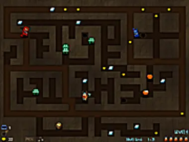 Die Mission in diesem Geschicklichkeitsspiel The Dwarf ist es, alle Diamanten einzusammeln, indem du über sie läufst, um das Level abzuschließen. Bewege deine Spielfigur mit den Pfeiltasten. Verfolge die Monster, um sie zu eliminieren und sie von deiner offenen Truhe fernzuhalten. Monster mögen sich gegenseitig auch nicht. Nutze diesen Umstand, um deine Truhe zu schützen. Halte dich von den roten Monstern fern. Wenn deine Truhe gestohlen wird, verlierst du das Spiel.