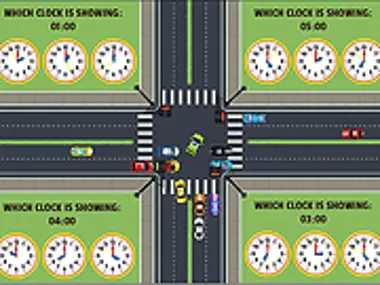 Dies ist ein Verkehrskontrollspiel, in dem Sie den Verkehrsfluss steuern, indem Sie den Verkehr in einer Spur starten und stoppen, indem Sie auf eine Uhr klicken, die die angeforderte Zeit anzeigt. Es gibt vier Sätze von Uhren; jede ist mit einem Ampelsignal verbunden. Wenn Sie auf eine Uhr tippen, die die angeforderte Zeit anzeigt, wird ihr Signal grün und alle anderen Signale werden rot. Versuchen Sie, so viele Aufgaben wie möglich zu lösen, während Sie den Verkehrsstau vermeiden. Wenn Sie auf die falsche Uhr tippen, verlieren Sie einige Punkte und auch eines von 5 Leben. Je weiter Sie in den Leveln vorankommen, desto schwieriger wird das Spiel. Können Sie den Verkehr regeln? Viel Spaß beim Spielen dieses Spiels hier auf Y8.com!
