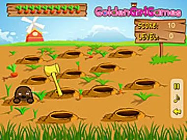Benutze deinen Hammer, um Murmeltiere zu hauen, die aus den Löchern auftauchen. Klicke mit der linken Maustaste, um sie zu hauen. Sammle Punkte, indem du so viele Murmeltiere wie möglich haust, bevor die Zeit abläuft.