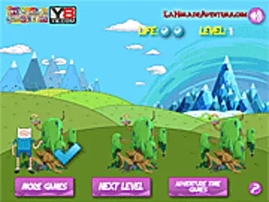 Schau dir die 3 Baumhäuser an, hinter einem von ihnen versteckt sich Finn. Du musst das richtige Baumhaus wählen, um Finn zu finden, du hast 3 Versuche. Setze deinen Verstand ein und behalte das richtige Baumhaus im Auge, und viel Glück! Folge Finn, er ist hinter einem der drei Baumhäuser versteckt. Wähle das richtige aus, um das Level zu bestehen.