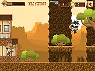 Vor langer Zeit, im Jahr 1870, war der Wilde Westen voller Gesetzloser. Der örtliche Sheriff braucht deine Hilfe, um einen Bankräuber zu fangen, aber wie du sehen wirst, wird das keine leichte Aufgabe sein. Viele gefährliche Herausforderungen müssen während der Verfolgung des Flüchtigen gemeistert werden, und große Fähigkeiten sind erforderlich, damit du deine Mission unversehrt beenden kannst. Sammle 50 Münzen, um zusätzliche Kugeln zu erhalten.
